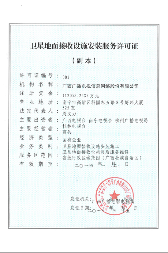 广西卫星地面接收设施安装服务机构查询