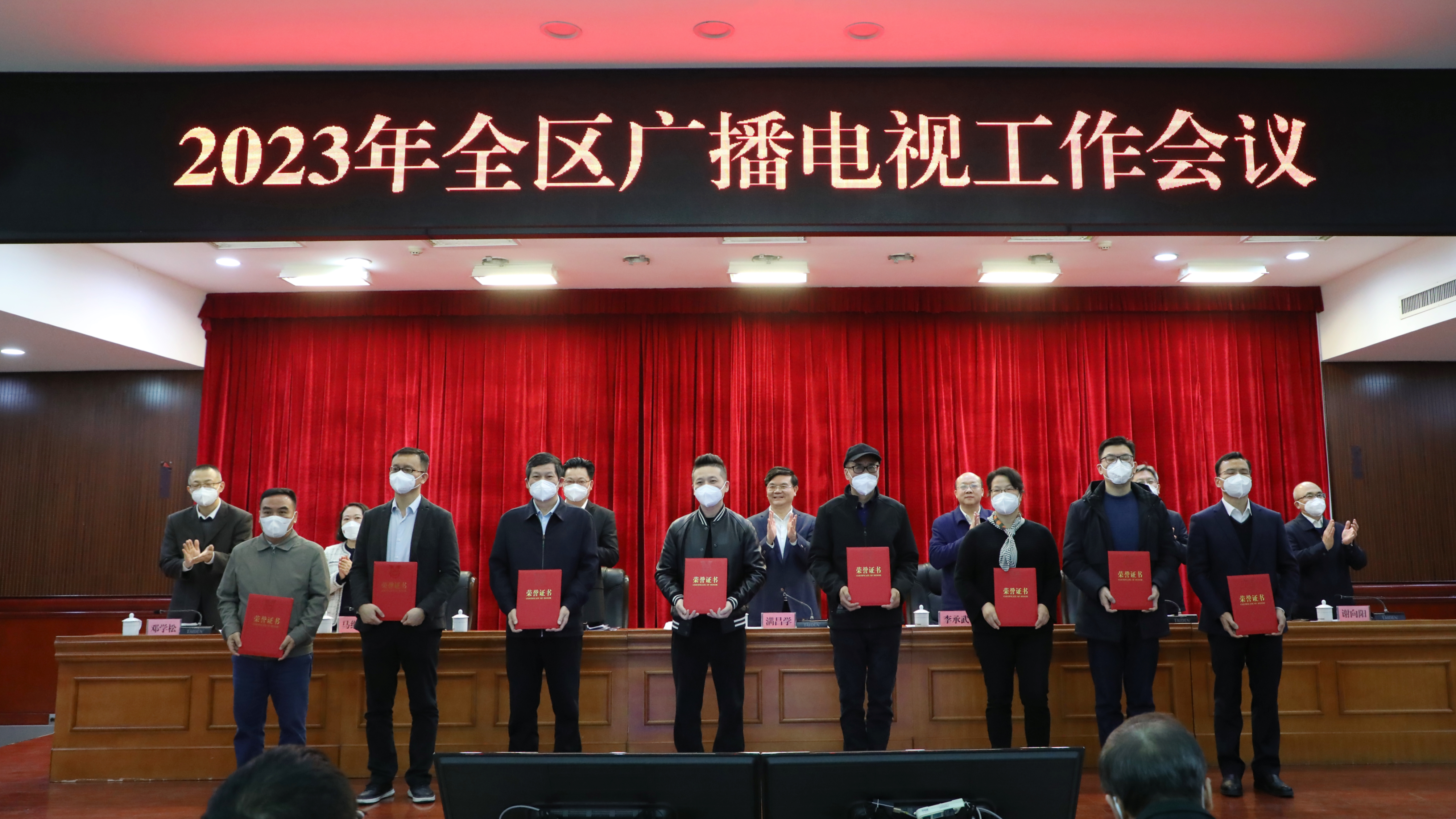 会议为圆满完成党的二十大广播电视安全播出保障任务单位代表、开展广播电视公共服务建设成绩突出的单位代表、国家和自治区重大奖项的项目代表颁发荣誉证书。