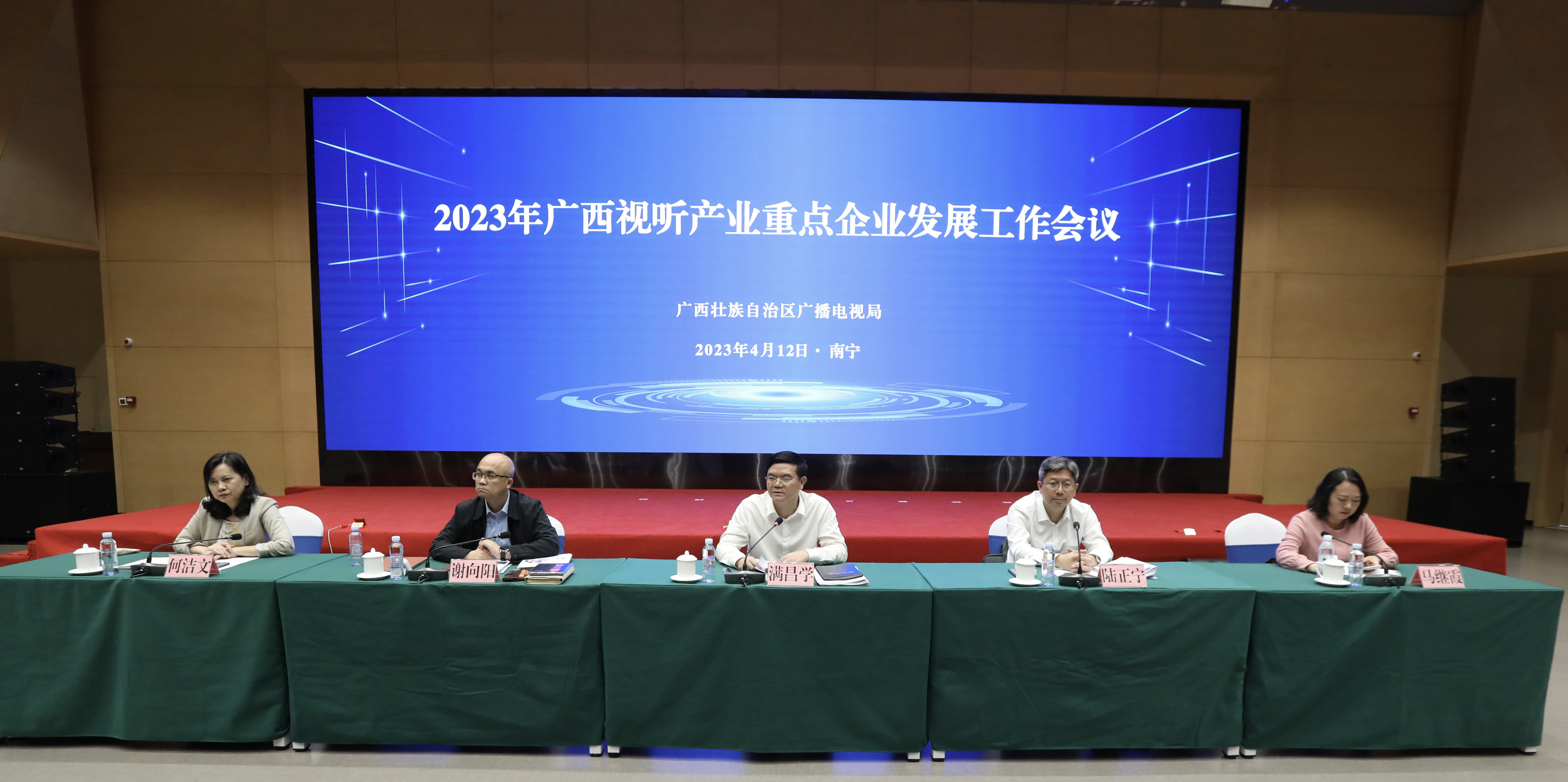 4月12日,2023年广西视听产业重点企业发展工作会议在中国—东盟网络视听产业基地召开,自治区党委宣传部副部长,H漫-H漫性爱 党组书记、局长满昌学出席会议并讲话,H漫-H漫性爱 党组成员、副局长陆正宁,H漫-H漫性爱 台副台长马继霞,广西广电网络公司董事长谢向阳、监事会主席何洁文出席会议。H漫-H漫性爱 、H漫-H漫性爱 台、广西广电网络公司相关负责人以及区内视听产业重点企业代表及相关机构代表约80人参加会议。